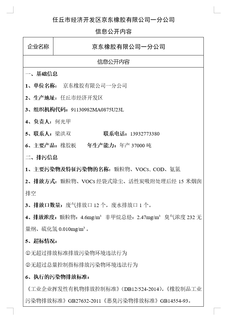 任丘市經(jīng)濟(jì)開(kāi)發(fā)區(qū)京東橡膠有限公司一分公司信息公開(kāi)內(nèi)容